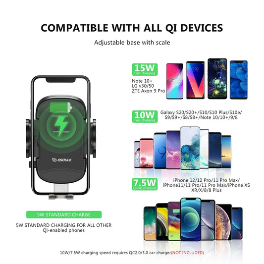 EH39BK 15W Wireless Charging Air Vent Car Holder - ESoulk 15W Cargador Inalámbrico Coche - Salida Aire/Rotación 360°