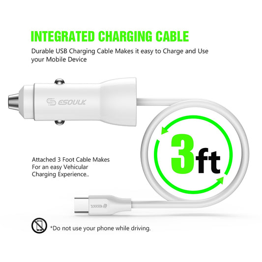EC43P-TPC-WH 2.4A Dual USB Car charger & 5FT Cable for Type-C - ESoulk juego Cargador Coche USB Doble 2.4A 8 Pines
