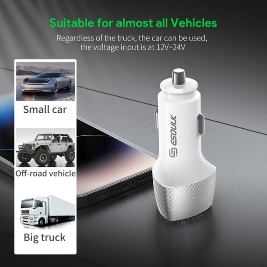EA15-WH 36W FAST CAR CHARGER 18W PD+18W QC - ESoulk EA15 36W Cargador Rápido Coche - 2 Puertos USB PD/QC
