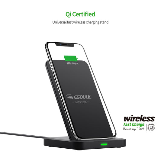 EW03PBK: QI 10W Vertical Double Coil Wireless Fast Charger - ESoulk QI 10W Cargador Inalámbrico Vertical Doble Bobina (EW03PBK)