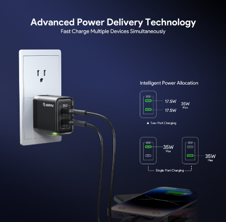 EK-2002BK Esoulk EK-2003 35W GaN Dual USB-C Adaptador de pared (negro)
