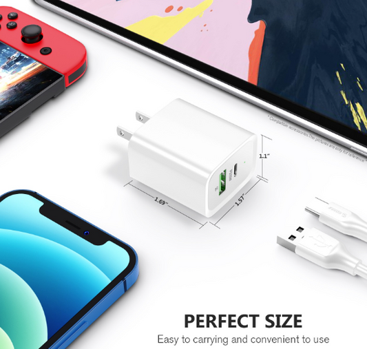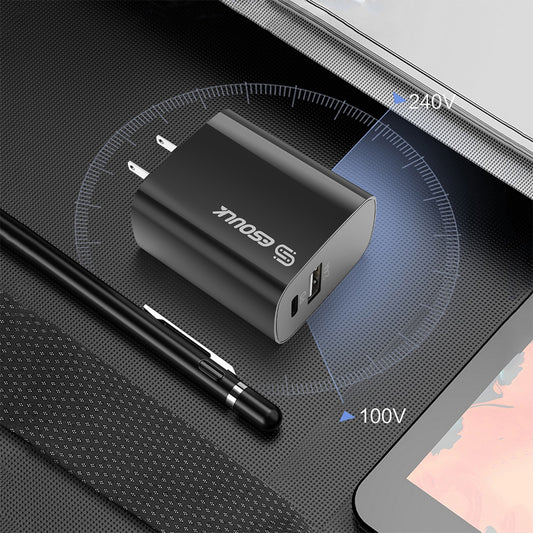 EA12P-BK 18W PD & 2.4A USB Wall Adapter - ESoulk adaptador de pared PD y USB-A 18W