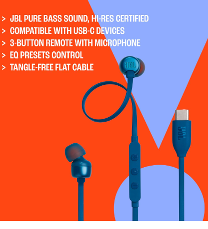 JBL TUNE 310C Auriculares internos con cable que no se enreda y control con un solo botón: sonido potente y llamadas claras en un diseño liviano