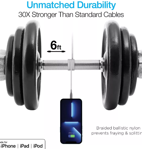 Naztech Titanium USB-C a MFi Lightning de 6 pies Cable de carga rápida trenzado